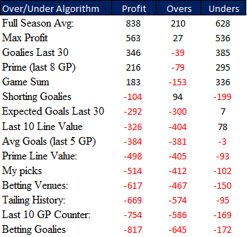 be profitable to bet on goalies who are bad against that opponent, or betting a